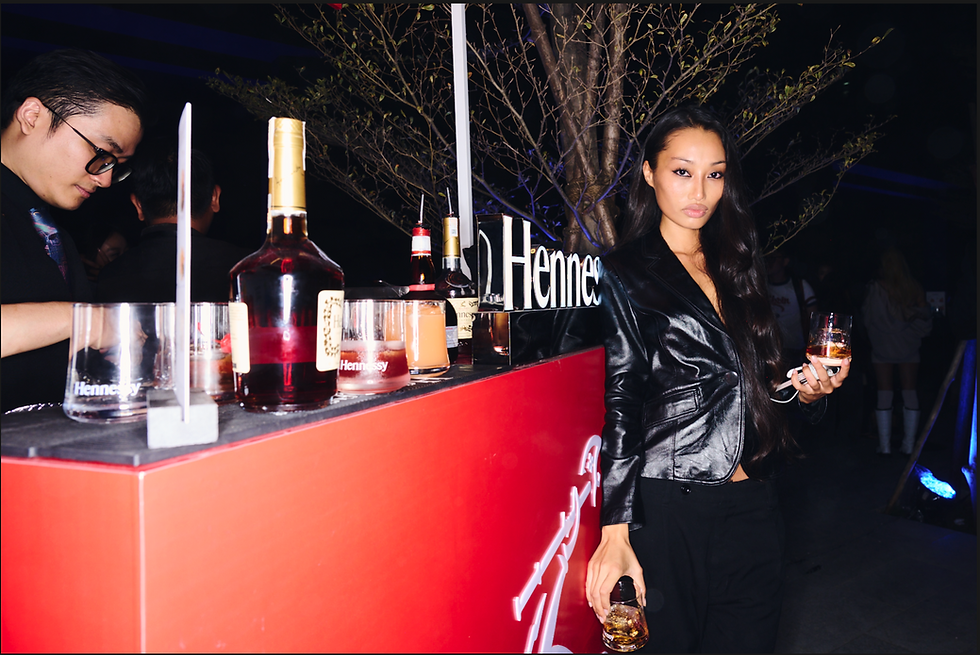 Hennessy xuất hiện với các ly cocktail được pha chế trực tiếp - len vào dòng chuyển động của khách mời như một nhịp thưởng thức xuyên suốt sự kiện, dẫn dắt nhịp cảm xúc của khách mời trước khi bước vào runway.
